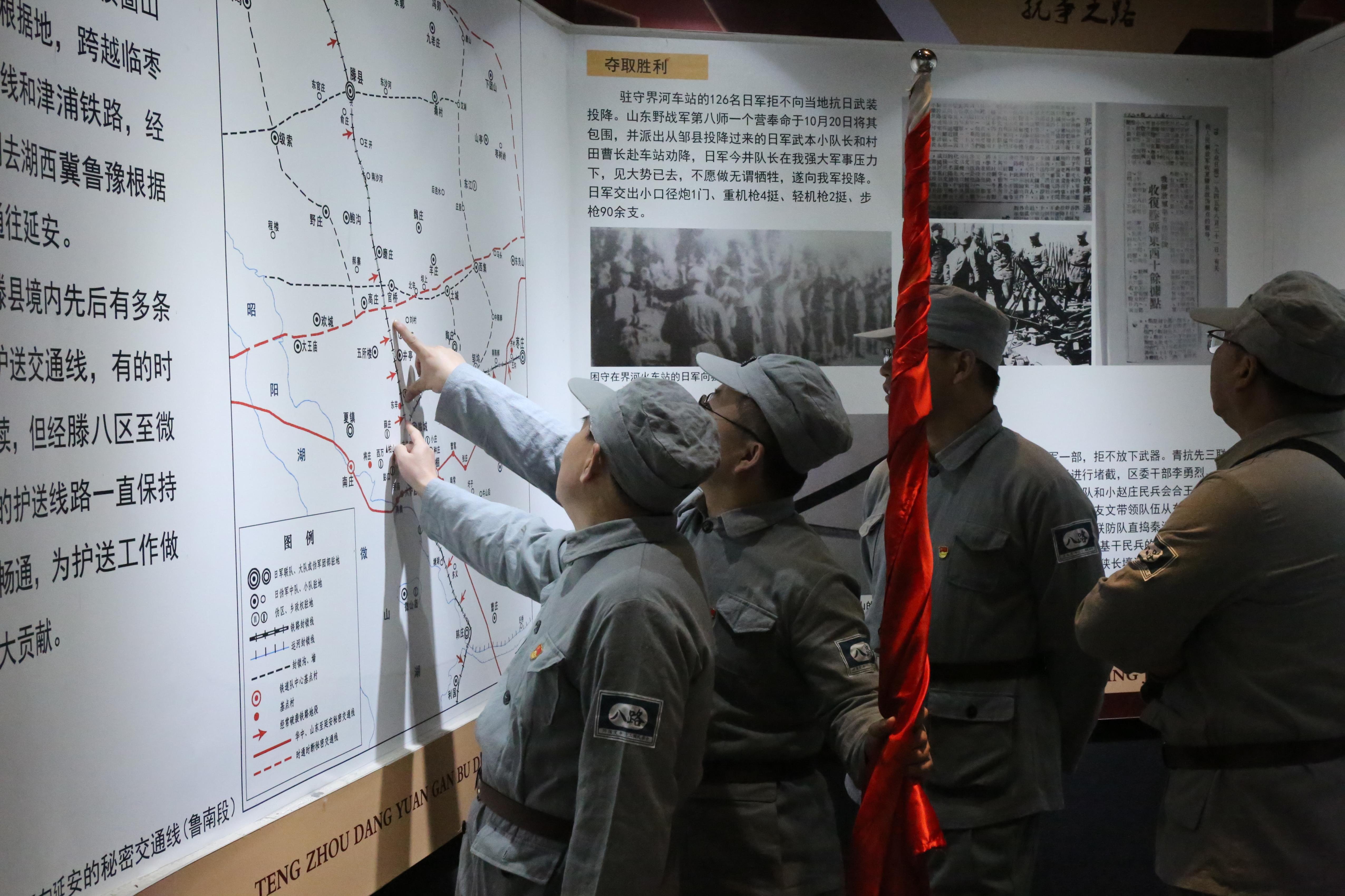 党员们身着八路军服装,依次参观了红岛、成功之路展室和铁道游击队旧址。在纪念碑前,面对鲜红的党旗,全体党员重温了入党誓词;在展室和旧址,观看了大量的图片和实物,瞻仰革命先烈的遗物和事迹,缅怀革命先烈的丰功伟绩,深刻领会到革命先辈们坚定的理想信念和顽强拼搏的革命精神。