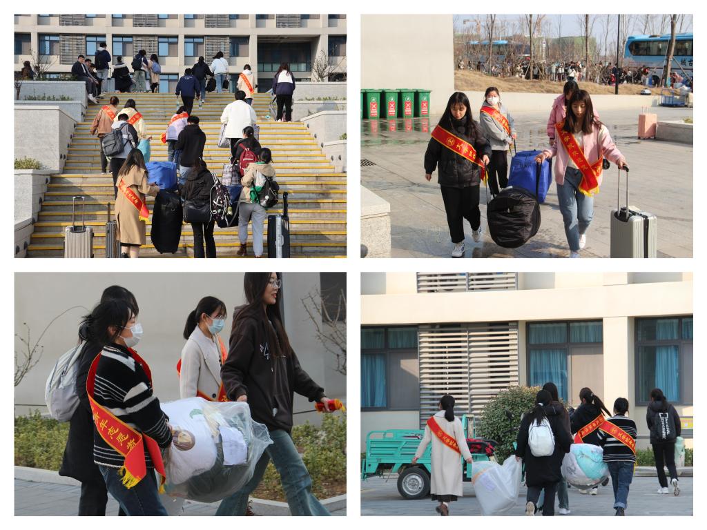 3月1日下午,由院党总支书记宋建修、院学生党支部书记王元元带队,党员师生佩戴党徽,身披绶带,很早就来到了迎新点进行准备。所有党员同志秉持团结互助的理念,热情高涨地投入到搬运工作中,协助新同学将一件又一件行李搬到宿舍。沉重的行李并没有难住志愿者们,密集的阶梯也没有阻挡党员的脚步,整个过程有条不紊、高效有序,没有一名党员喊累,没有一名党员退缩。