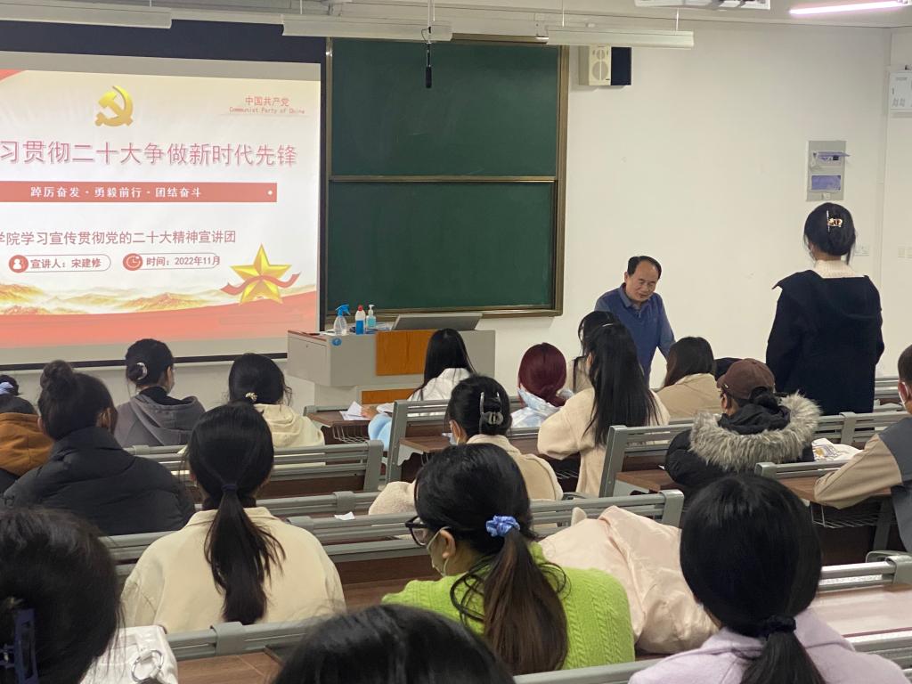 11月20日下午,PA视讯集团网站党的二十大精神宣讲会在新城校区增信楼3418室举行,院党总支书记宋建修为党员干部和学生代表讲“第一课”。