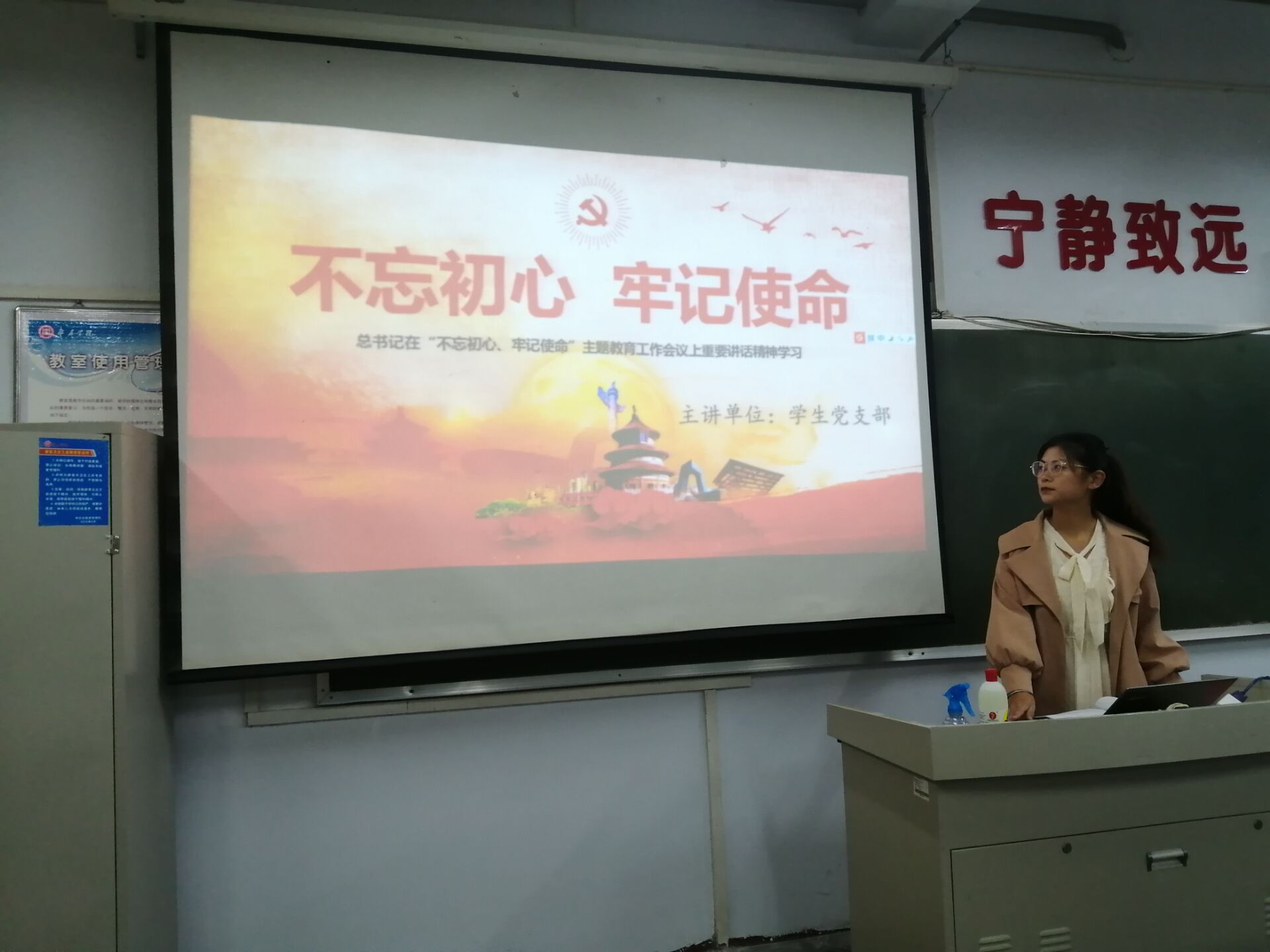 为加强入党积极分子的党性建设,使入党积极分子从思想上真正入党,PA视讯集团网站于10月15日晚在文科楼115教室开展以“不忘初心、牢记使命”的主题教育,集中学习习近平总书记重要讲话,张卫婷、胡亚楠同志受邀担任主讲。