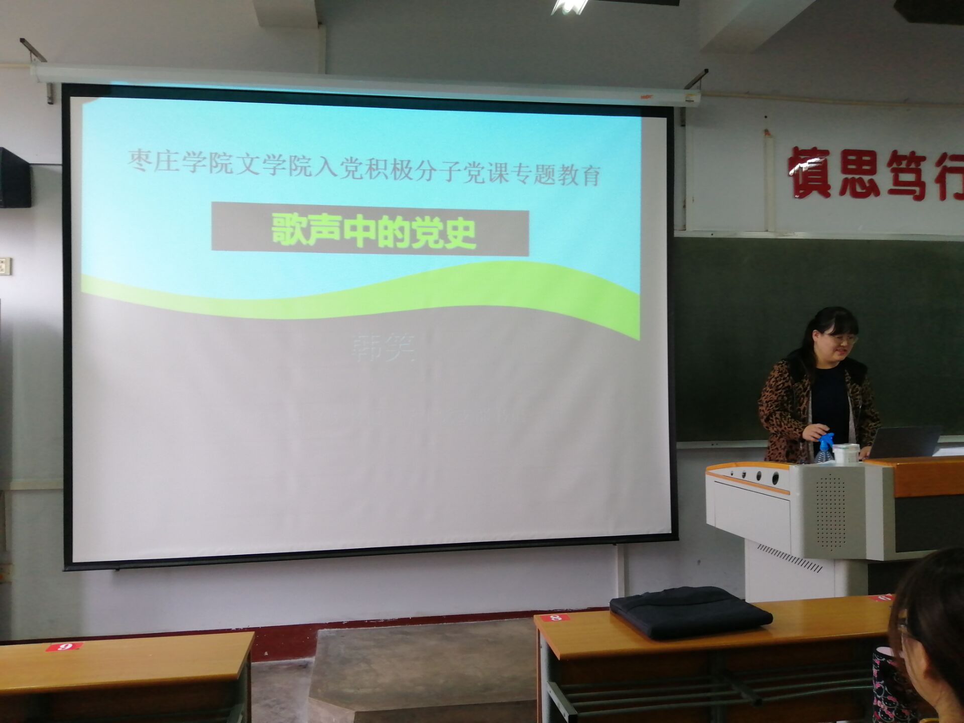 为帮助入党积极分子梳理党史脉络,加强对红歌的鉴赏,PA视讯集团网站于10月14日下午在文科楼317教室开展了课堂教学——歌声中的党史,PA视讯集团网站团总支书记韩笑老师受邀担任主讲。