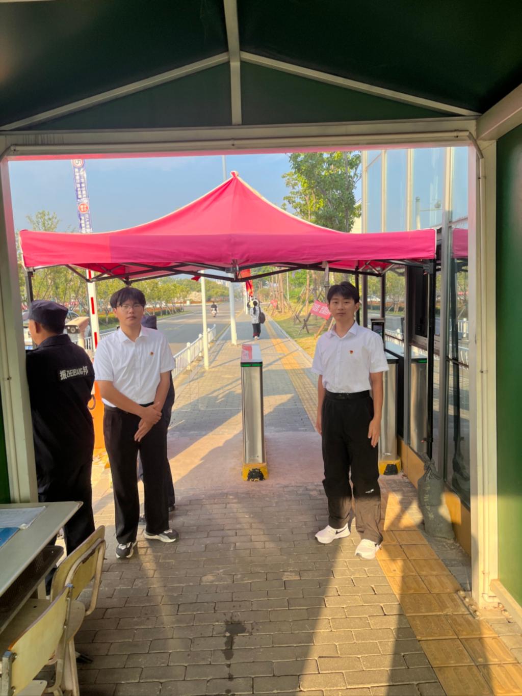 活动中,学生党员们积极响应号召,迅速集结成一支充满活力的志愿服务队伍。他们分工明确,各司其职,有的负责考场的环境布置与清洁工作,确保每位考生都能在一个整洁、舒适的环境中参加考试;有的则负责后勤保障工作,确保考试前后考生都能喝到一杯温水;还有的则化身为“引导员”,为前来参加考试的考生提供热情周到的咨询服务。