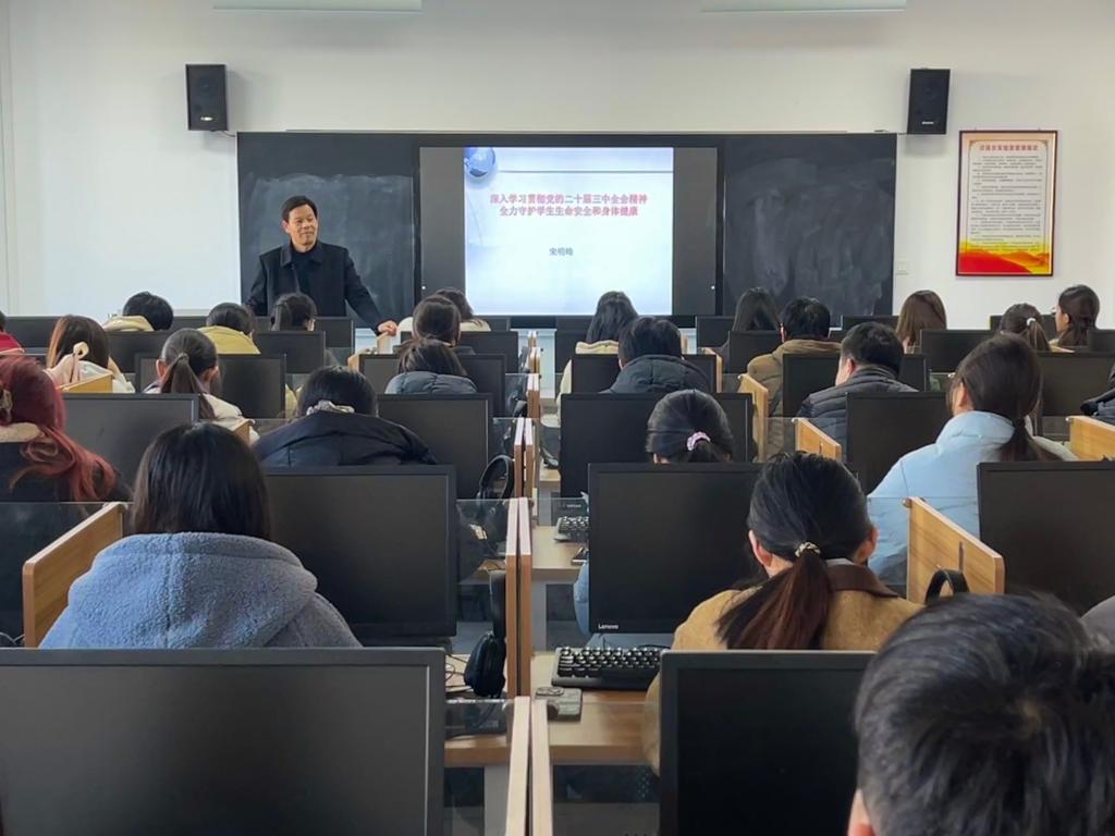 随后,宋明峰围绕主题,深入浅出地解析了如何将党的二十届三中全会精神融入到日常教学与管理工作之中,特别是在当前复杂多变的形势下,如何确保学生的生命安全和身体健康成为学院工作的重中之重。他强调,作为教育工作者,要时刻以学生为中心,不仅要传授知识,更要关心学生的身心健康,建立健全安全防护体系,营造安全、健康、和谐的学习环境。
