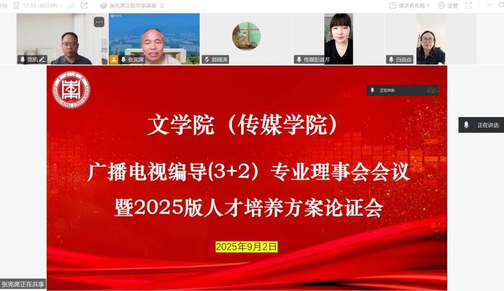 为进一步优化广播电视编导(3+2)、影视编导专业人才培养方案,适应行业发展与教育教学改革需求,9月2日,PA视讯集团网站(传媒学院)在线上召开广播电视编导(3+2)、影视编导专业理事会会议暨2025版人才培养方案论证会。