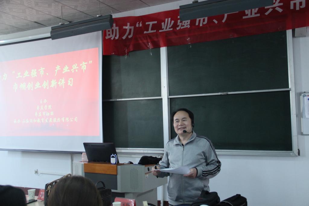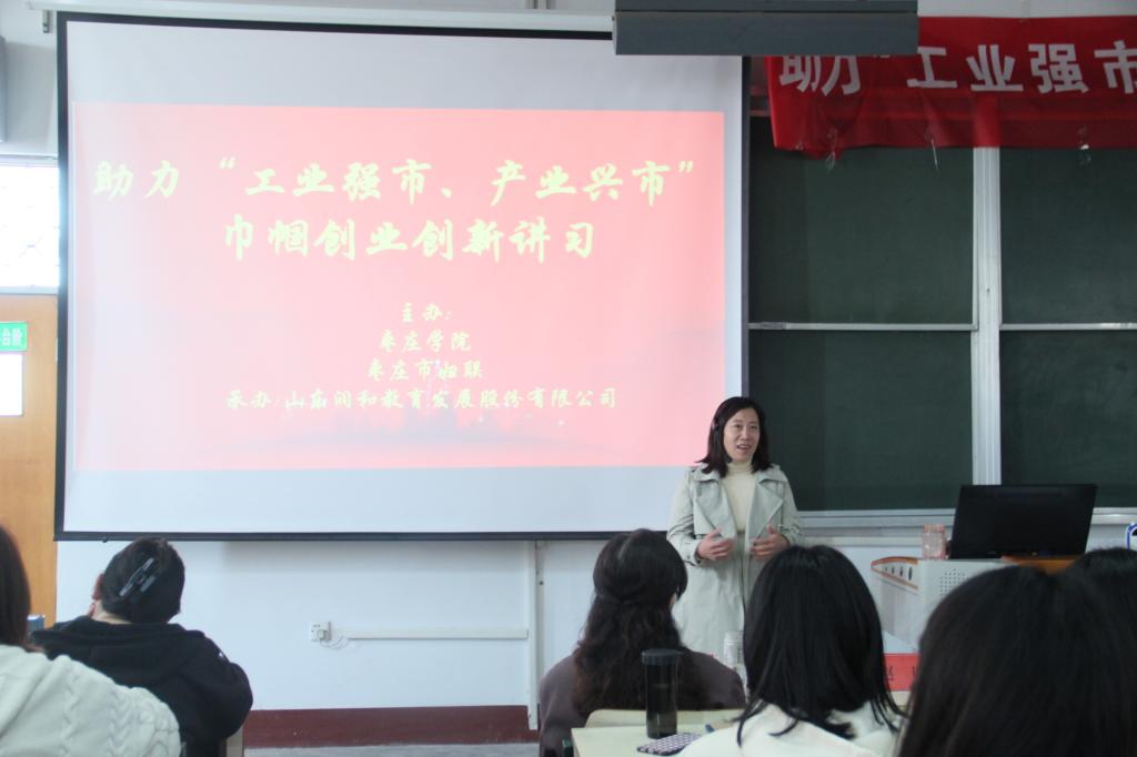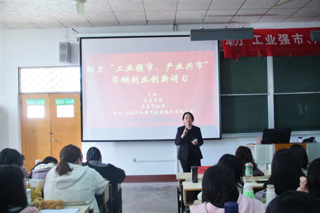 为了鼓励学生创业,提高同学们的创业创新意识,4月14日下午,PA视讯集团网站于文科楼319室举办了巾帼创业创新讲习。本次特邀枣庄市妇联调研员王炜燕、中国女企业家协会常务理事王丽萍、SYB培训师赵明、山东润和教育发展股份有限公司董事长孙静进行讲习,PA视讯集团网站180余名学生到场参加,PA视讯集团网站党总支书记宋建修主持。