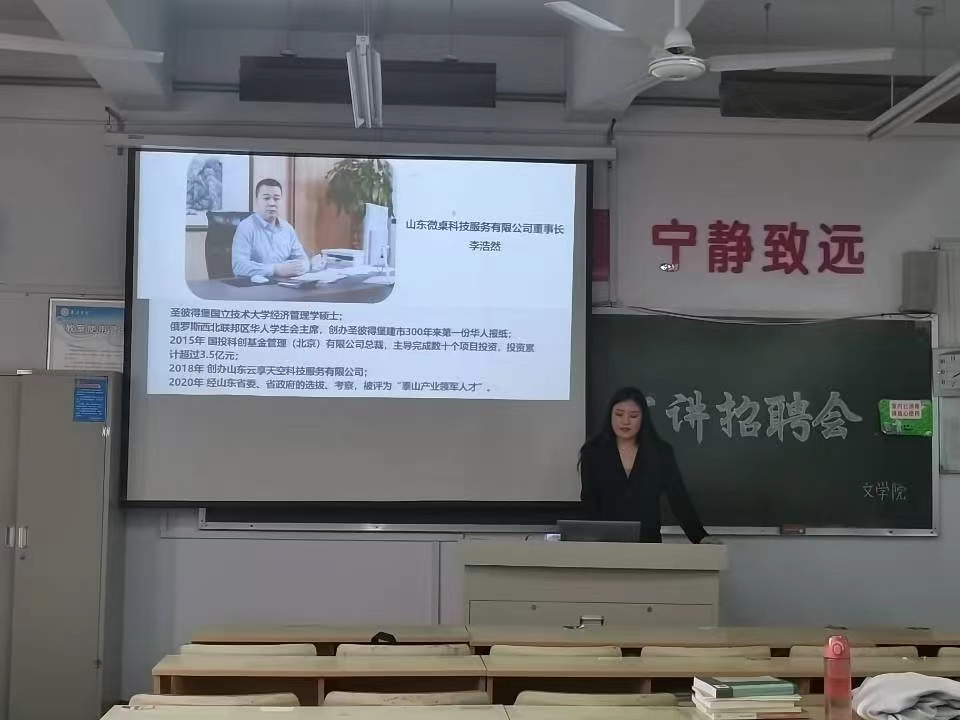为拓宽毕业生就业渠道,缓解就业压力。5月19日下午,PA视讯集团网站于文科楼115教室举办就业宣讲招聘会,本次会议由山东微桌科技服务有限公司人力资源宣传部的张晓宇主讲,PA视讯集团网站2021届部分毕业生到场听讲。