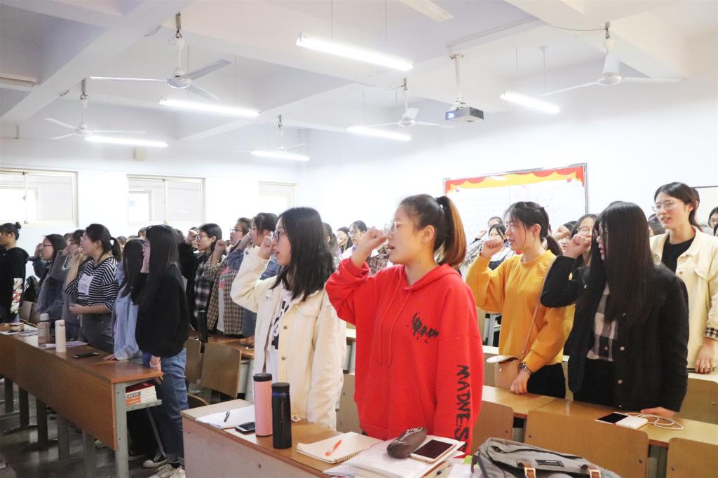 会上,樊旭阳同学从资助标准、申请条件、助学金发放与管理等方面对国家助学金的政策进行了详细说明。随后,崔青青和潘会榆两位优秀学生代表分享了自己的学习和生活经历,表达了对国家、学校的感恩之情,其他同学畅谈自己获得国家助学金的感受。王竹梅老师结合国家助学金违约处理办法等管理措施对奖助学金的使用权限、使用原则等方面做出相关要求。最后,全体受资助同学进行感恩与励志宣誓仪式,承诺学会感恩,励志成才,回报社会。