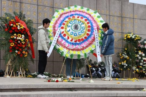 活动中,全体同学至铁道游击队纪念碑下进行敬献花圈仪式,全体同学面向纪念碑整齐肃立,深情庄重。第一项,全体同学脱帽,向烈士默哀一分钟。第二项,两名男生抬动花圈缓缓走向纪念碑,向烈士敬献花圈并整理花圈挽联。第三项,全体同学按顺序走到纪念碑下敬献鲜花。第四项,2022级影像创作本科一班陈晶同学代表讲话,陈晶同学向我们介绍了铁道游击队的前身,讲解了铁道游击队战士们如何机智灵活的与敌人进行斗争。她的讲话更是表达了全体同学的心声,同学们纷纷表示自身应当从革命先烈身上汲取伟大的精神力量,积极投身到社会发展的时代浪潮中,为实现中华民族伟大复兴不懈奋斗。