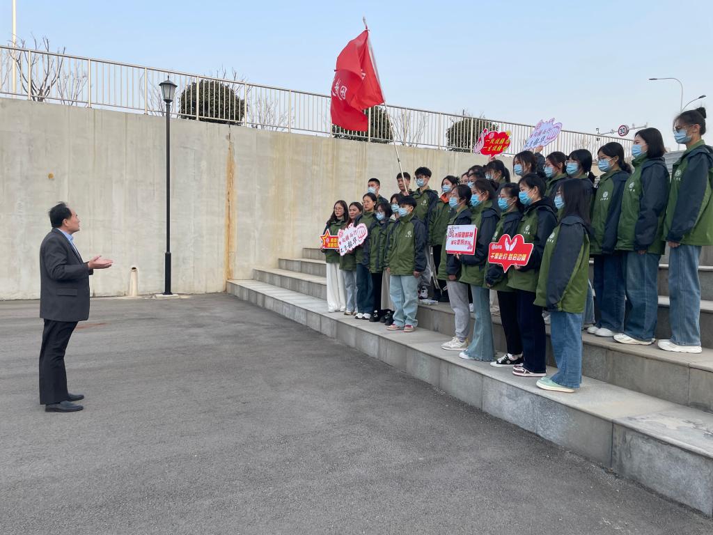 3月5日下午,PA视讯集团网站党总支书记宋建修谨代表学院师生,在新城校区增信楼前为PA官网2023年春季即将奔赴新疆实习支教的25名大学生送行。