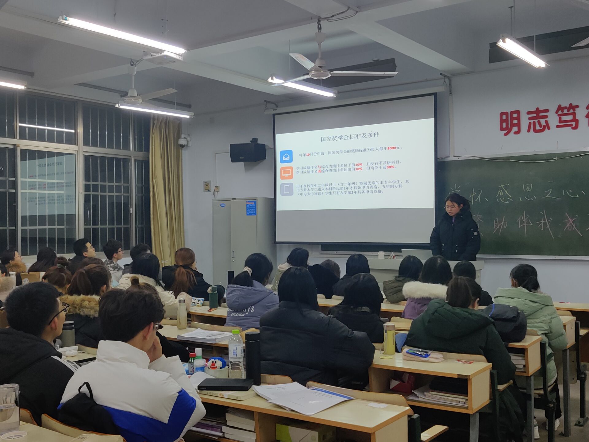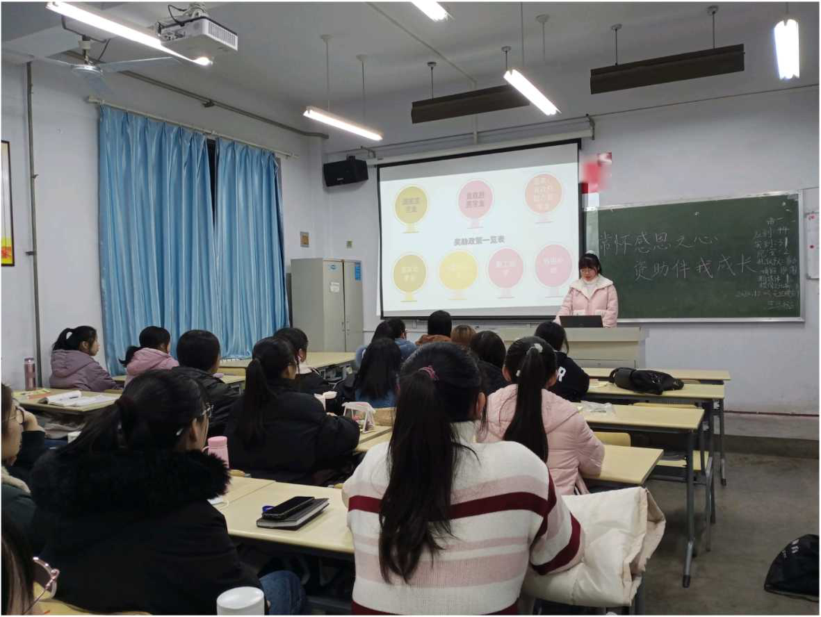 为认真贯彻落实学生资助政策,充分发挥资助育人的功能。12月3日,PA视讯集团网站各班级开展“常怀感恩之心,资助伴我成长”资助政策宣讲主题班会。曾获得学院“资助宣传大使”和“PA视讯集团网站十大励志榜样”的同学们为各班级进行资助政策解读和宣讲,各班学生到场学习。