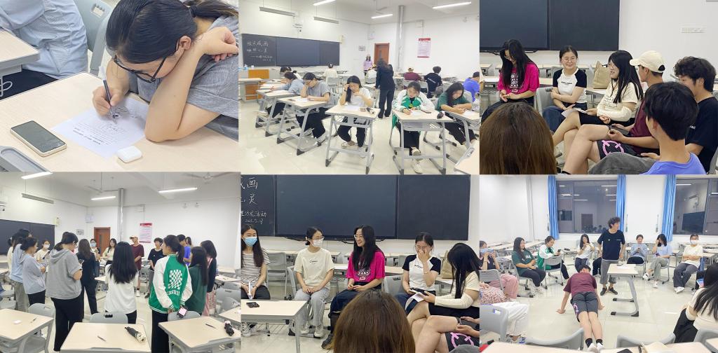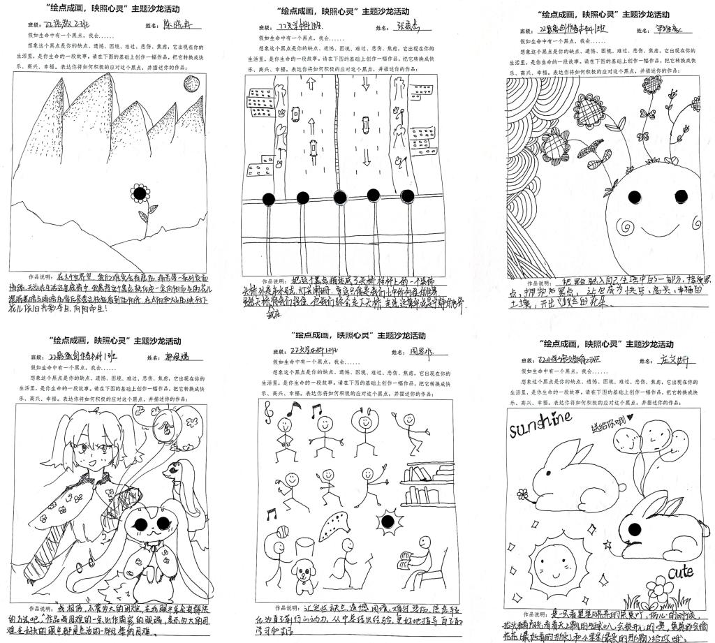 本次活动,PA官网从2021、2022级抽取部分不同性格的同学,以“假如生命中有一个黑点,它们代表缺点、遗憾等,如何在此基础上,转换成快乐与幸福”为题,在舒缓的背景音乐下同学们以自己的所思所想所悟进行创作,通过点线面等艺术表现形式将思想具象化到纸面上。在互动环节中,同学们通过分享彼此画作的创作理念,更好的了解了性格迥异同学们的多角度思维方式,更多面化的认识了自己。正如同学们的作品中所述“走过阻碍前行悲伤难过的天桥,我们终会走进向往的宁静或繁华的世界。”