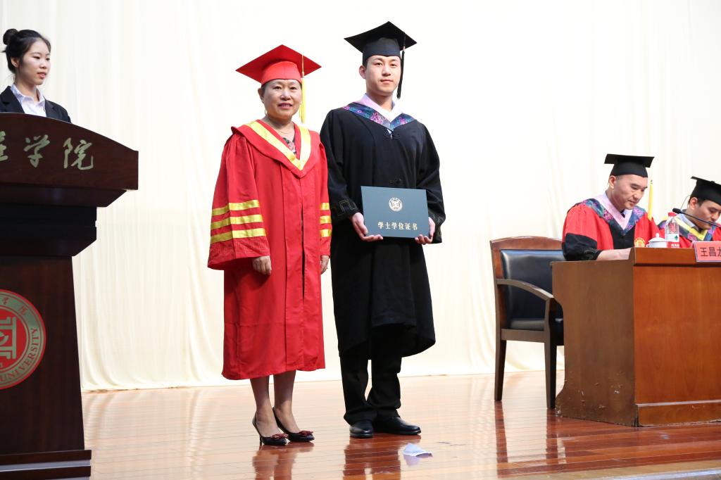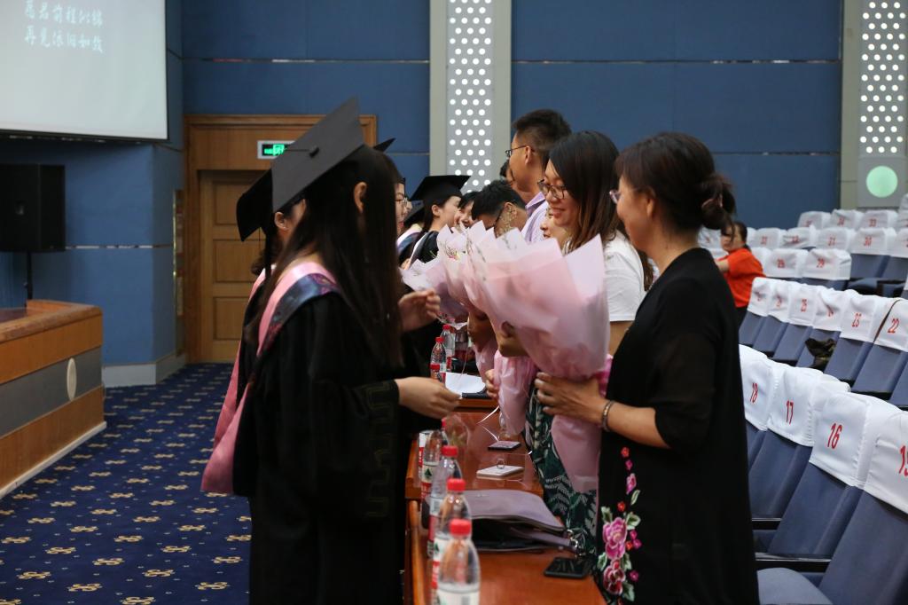 典礼在庄严的国歌奏唱中拉开序幕。在段圣玉宣读了《PA视讯集团网站关于授予李春萌等138名PA视讯集团网站2019届普通全日制本科毕业生学士学位的决定》后,李丽清亲自为全体本科毕业生一一拨穗并颁发学士学位证书,合影留念并送上祝福。随后,毕业生代表以诗歌朗诵的形式,饱含深情地感恩母校,感激恩师,祝福同学,展望未来。毕业生为教师代表送上美丽的鲜花,表达对老师的崇高敬礼。李思华老师代表全体老师为毕业生送上了殷切嘱托和深情祝福,希望同学们始终保持一份痴气、傲气与和气,向着自己的目标扬帆远航。最后,史大丰代表PA视讯集团网站向圆满完成学业的360名毕业生表示最热烈的祝贺和诚挚的感谢,并希望他们始终坚持理想,保持年轻人的激情和信念,不忘初心、砥砺奋斗,前程似锦、鹏程万里。