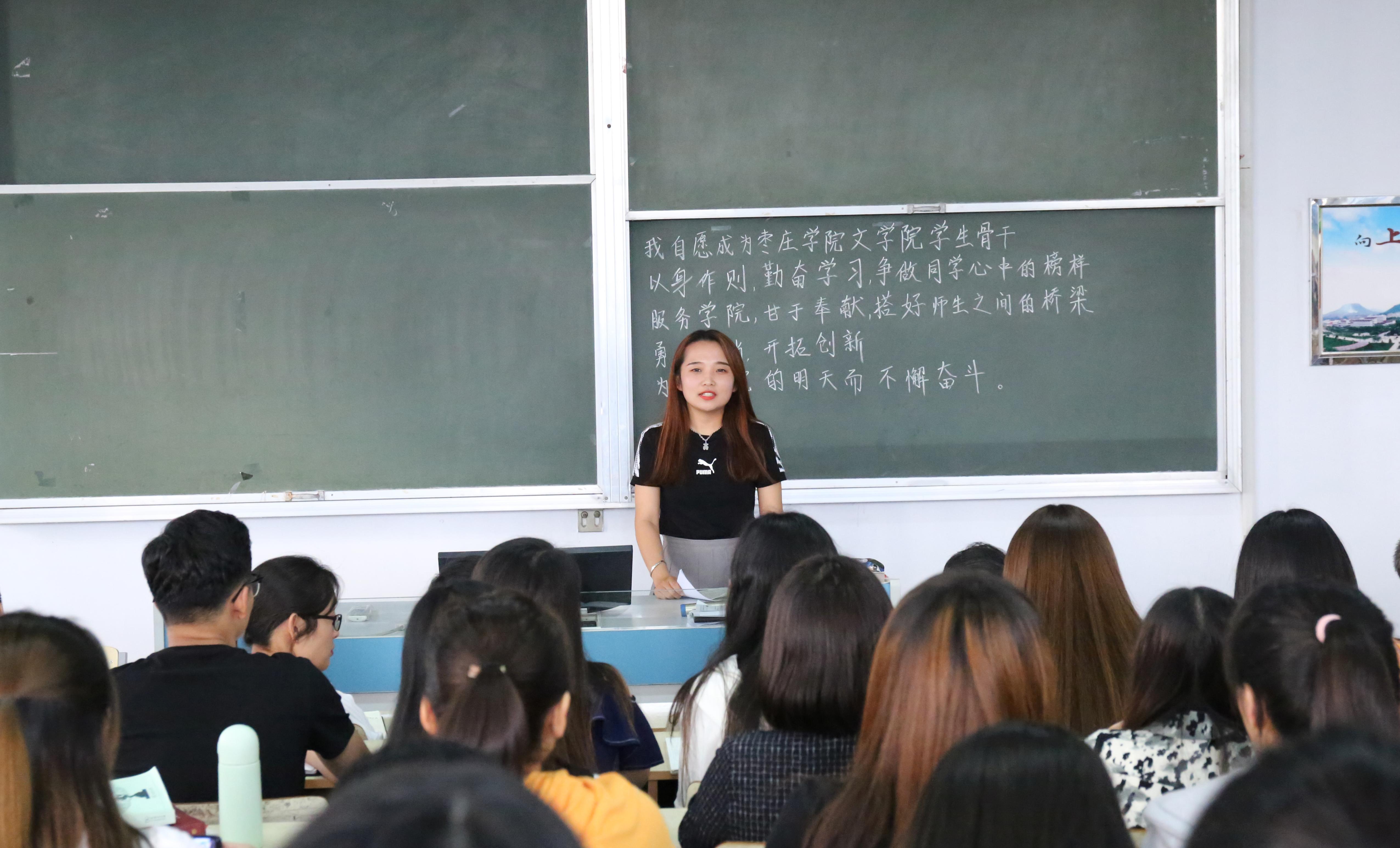 会议第二项是全体学生会干部进行宣誓,以此表达学生干部为学生服务,为学院奉献的决心。