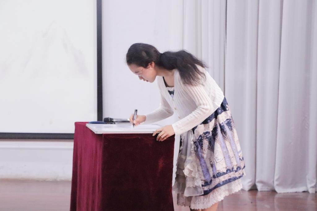 比赛现场古韵萦绕,诗香阵阵。来自10个学院的10位决赛选手进行了“识诗句,对诗文”、“单项选择题”、“飞花令”三个环节的精彩比拼。第一环节“识诗句,对诗文”,10位选手依次上台在白板上做答,和同学们共同品味古典诗词的唯美意蕴。第二环节“单项选择题”,以选择题的形式,要求选手进行从诗人到作品的知识转换,考察了选手们的临场反应能力和诗词底蕴。第三环节“飞花令”,三三分组围绕大屏幕上的意象说出相关诗句,这不仅是一场诗词储备的比拼,更是心理素质的较量。最终来自政治与社会发展学院的鲁忠云摘得桂冠,来自PA视讯集团网站的王坦等三名选手获得二等奖。