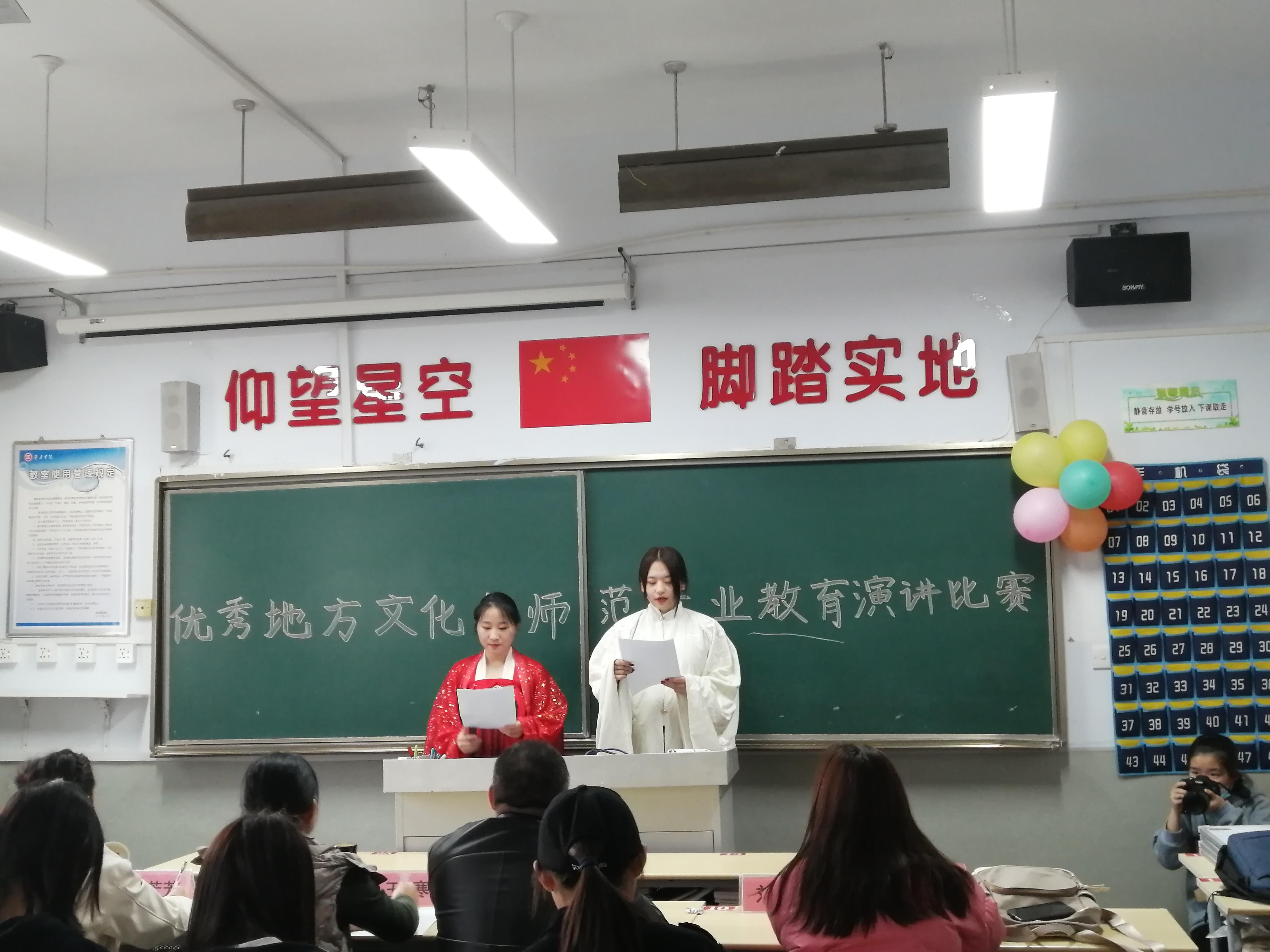 为汲取优秀地方文化,融入师范专业人才培养。11月11日下午,由PA视讯集团网站专业实训中心、PA视讯集团网站演讲实训中心和PA视讯集团网站学生会组织的“优秀地方文化与师范专业教育”演讲比赛决赛于PA视讯集团网站216教室举行。王寒、刘钰、贾鲁华、瞿华英、马芳芳五位老师担任本次大赛评委。