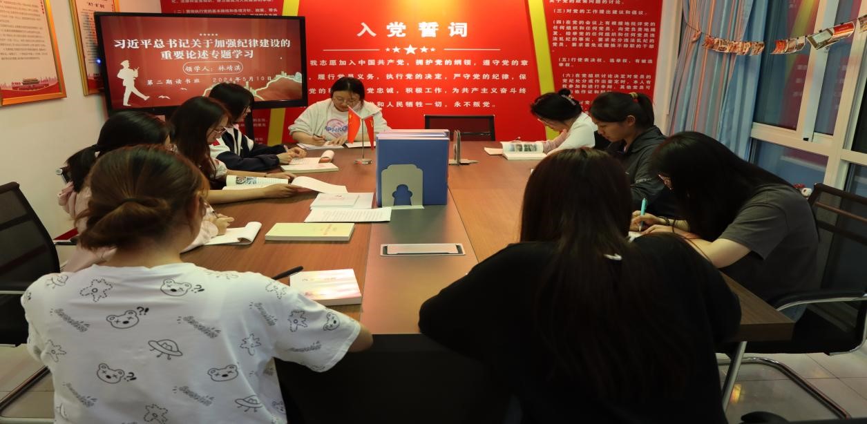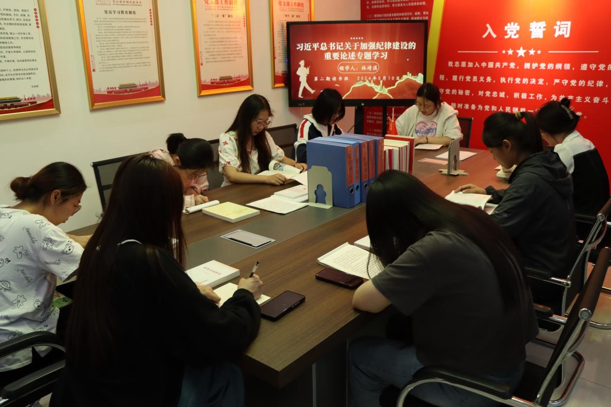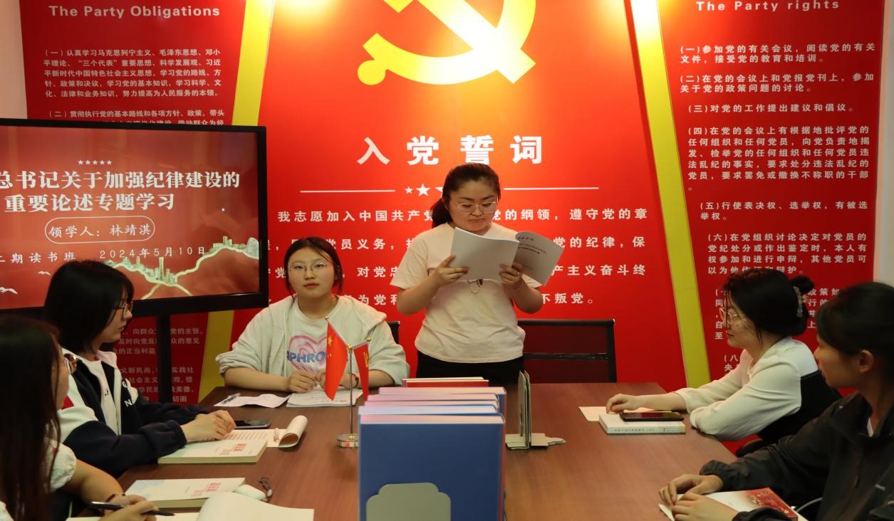 为深入学习贯彻习近平总书记关于加强纪律建设的重要论述,进一步落实全面从严治党要求,加强党员的党性修养,强化纪律意识,5月10日,PA视讯集团网站学生党员在“一站式”党团活动室开展了第二期党纪学习教育读书班活动,学生党员庄琪和林靖淇带领十位入党积极分子进行学习。