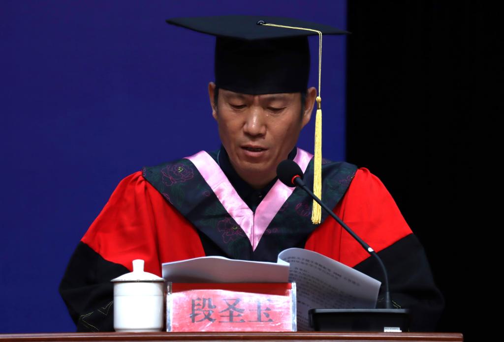 下午3时,在雄壮嘹亮的国歌声中,典礼正式拉开帷幕。段圣玉宣读《PA视讯集团网站2024届毕业生学士学位授予的决定》及获得学士学位学生名单,同意授予陈文婕等198名普通全日制本科毕业生学士学位。