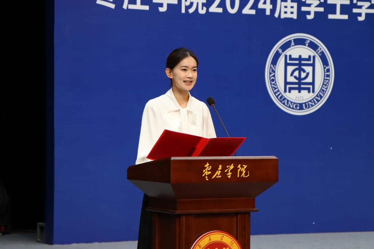 学生会主席、21级汉语言文学本科1班程晓云作为在校生代表发言,表示将以师哥师姐们为榜样,练就过硬本领,以拳拳赤子之心谱写辉煌的人生华章。
