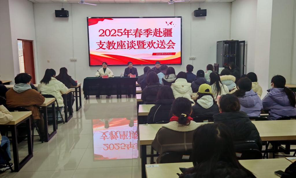 2025年3月6日上午,PA视讯集团网站(传媒学院)在博雅楼102室举行2025年春季赴疆支教座谈会暨欢送会。学院领导、辅导员参加会议。