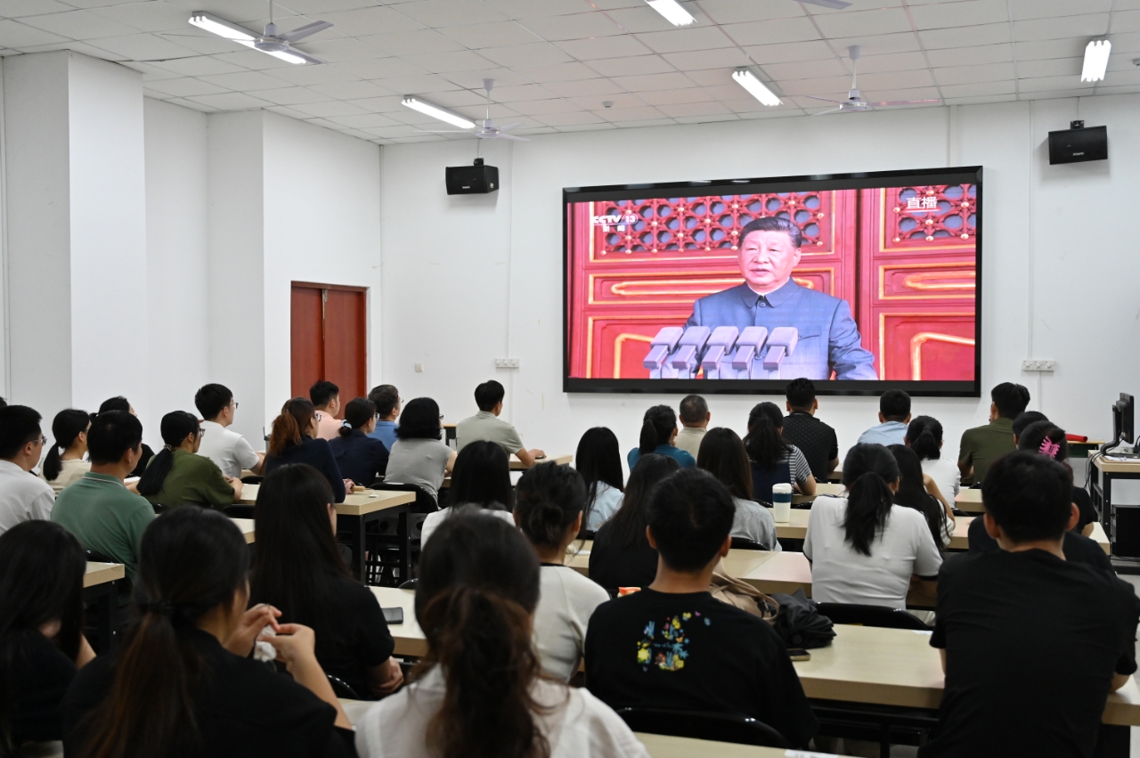 9月3日上午,PA视讯集团网站(传媒学院)在博雅楼102会议室、204会议室、德艺楼101教室等场地,组织师生200余人,共同观看纪念中国人民抗日战争暨世界反法西斯战争胜利80周年阅兵式直播。
