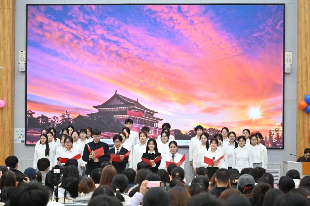 “青春颂歌”篇章中,情景歌舞《百年青春》与铿锵朗诵《革命青年》,共同构筑起一段跨越时空的青春画卷,重现先辈热血岁月,令新一代青年深刻体悟将个人理想融入时代洪流的崇高追求;“潮流艺韵”篇章中,歌舞串烧展现蓬勃朝气,配音秀则通过《追风者》片段重现,传递不屈的时代精神;“薪火筑梦”篇章中,话剧《大学生应聘风波》以幽默笔触刻画青年逐梦历程,引发全场共鸣。晚会中穿插的抽奖环节将气氛推向高潮,欢歌笑语中暖意融融。