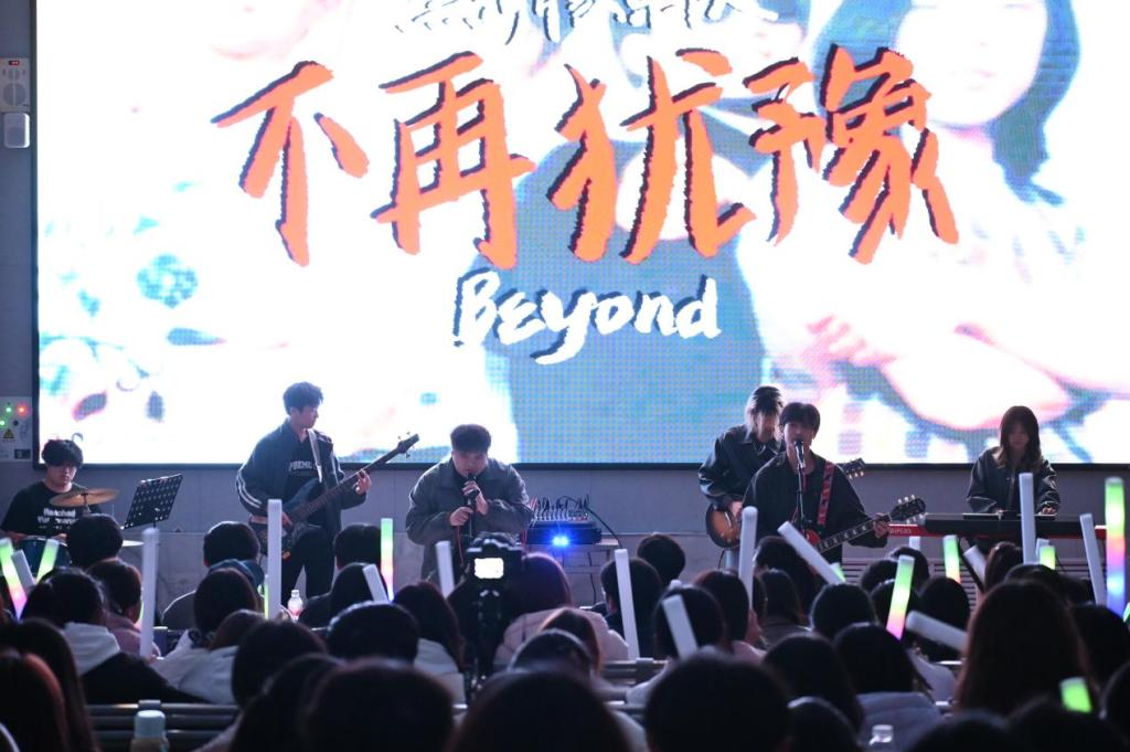 晚会在黑河豚乐队《不再犹豫》的演唱中拉开序幕,舞台光影交错、音乐动感十足,瞬间点燃全场氛围。“青春颂歌”“潮流艺韵”“薪火筑梦”三大篇章层层递进,节目形式多元,创意迭出,台下掌声雷动,喝彩声此起彼伏。