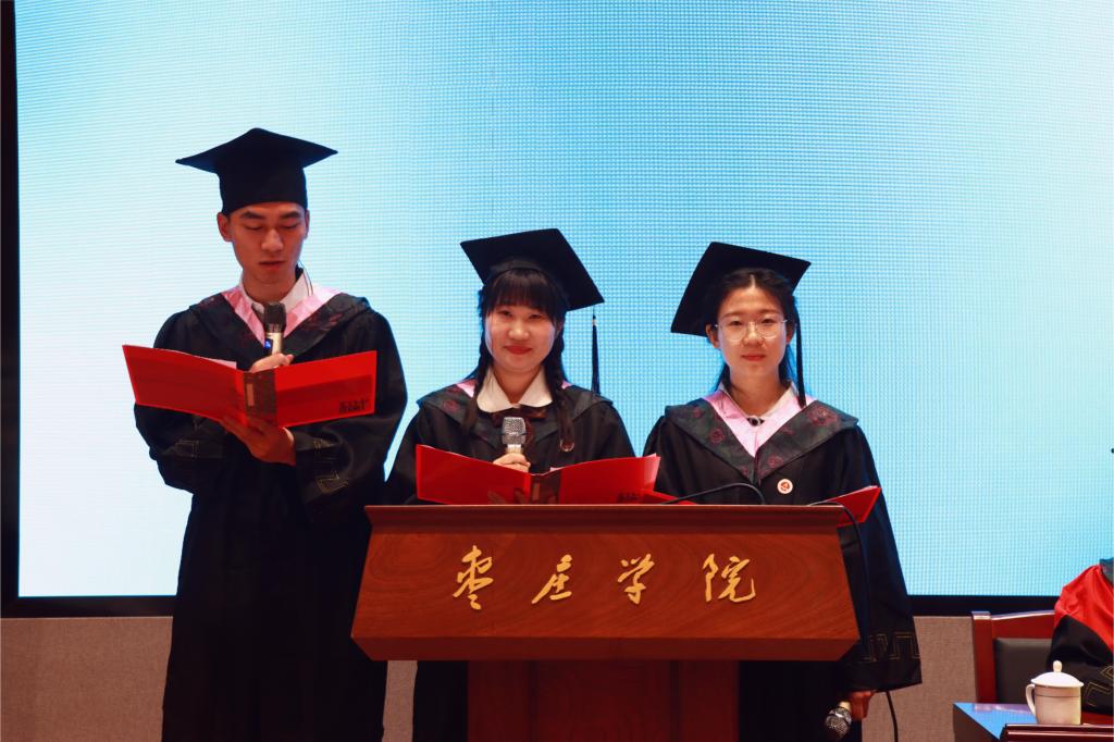 仪式在庄严的国歌中拉开帷幕。在同学们的热烈掌声中,段圣玉宣读了《关于授予安琪等290人学士学位的决定》,丰雷为毕业生一一拨穗并授予学士学位证书,为他们送上毕业祝福并合影留念。随后,三位优秀毕业生代表王春美、亓鹏、施玉新代表全体毕业生表达对母校、学院和老师深深的感谢和崇高的敬意,毕业生代表为在场的老师们敬献鲜花;在校生代表刘家名和五位同学用深情的语言和动听的歌声为学长学姐献上衷心的祝愿;教师代表陈饴媛向毕业生做离别赠言,希望同学们永保善良和纯真,保持学习状态,要有使命精神和担当精神,努力成为堪当大任的时代新人,慷慨激昂的话语中包含着PA官网老师们对全体毕业生的祝福和关怀。