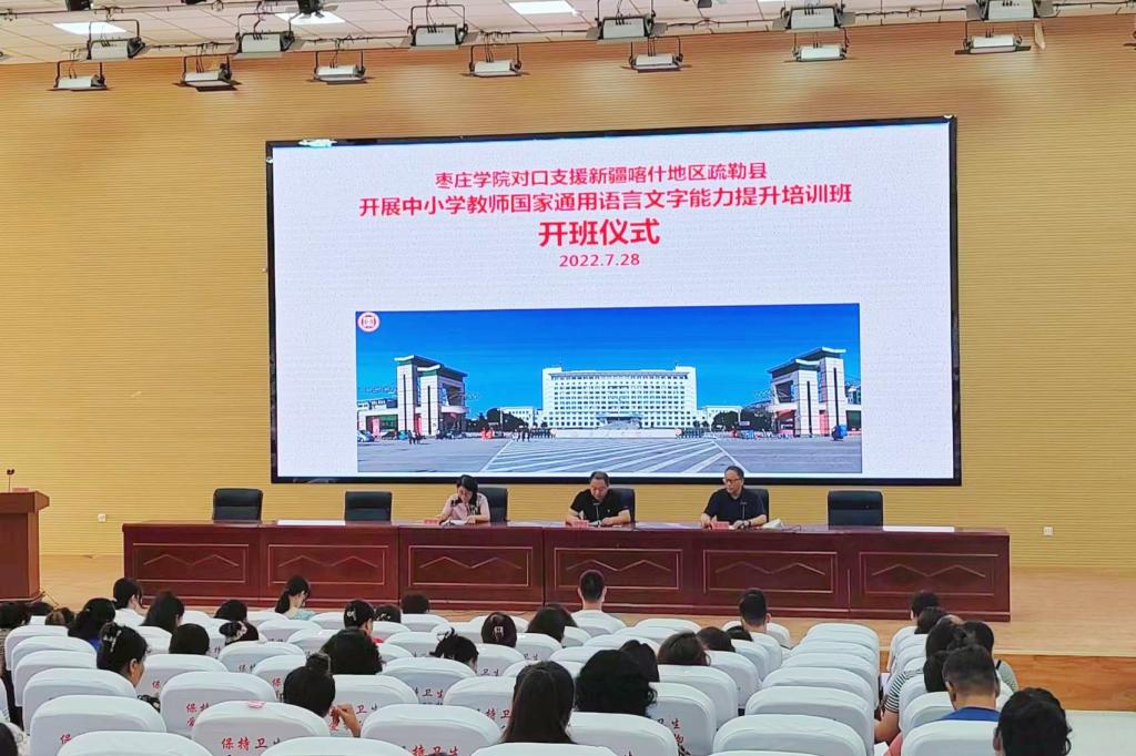 为进一步增强喀什市疏勒县教师国家通用语言文字规范意识,提高其国家通用语言文字应用水平,根据《山东省教育厅关于继续开展中小学教师普通话线上援助培训的复函》文件精神,遵照学校工作部署,7月28日上午10:00,PA视讯集团网站对口疏勒县教师国家通用语言文字能力提升线下集中培训开班仪式在疏勒县塔孜洪中学举行。东营援疆指挥部干部人才组组长、疏勒县教育局副局长刘召良,疏勒县教育局师训办主任朱新艳,版权所有 PA视讯·(中国区)官方网站-Made in Playace教师、国家级普通话测试员姜夫军、山东省普通话测试员徐颖慧,PA视讯集团网站普通话培训队及受援教师出席仪式。会议由朱新艳主持。
