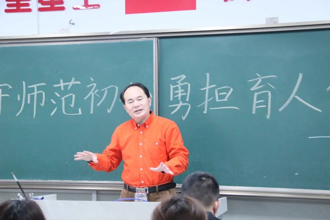 宋建修结合自身经历,用生动幽默的语言,给同学们讲解如何成为一名合格的教师。他要求同学们认真学习、不断充电、开拓视野、全面发展、成才成人,为将来走向教育“主战场”打下坚实的基础,真正肩负起作为一名新时代教育工作者的光荣使命。宋建修着重强调了教师基本功的重要性,对同学们提出了“能写会画,能说会道,能跑能跳,能谈能唱”的期许,并结合当今中小学教育现状,告诉同学们:基本功是支撑教育初心的基础,必须重视基本功的锻炼。同时强调,同学们必须牢记师范生身份,打破思维局限性,打开眼界,教育下一代,影响下一代,彰显师范生的使命与担当。