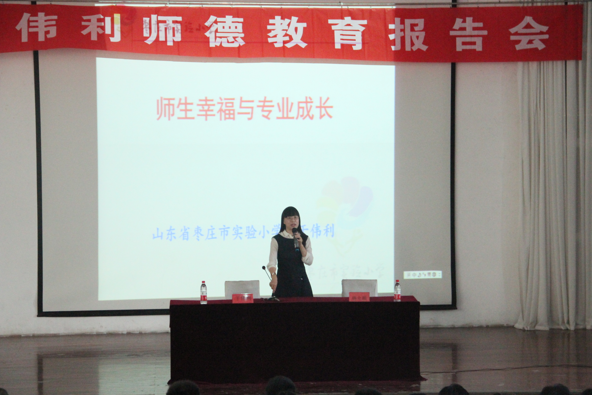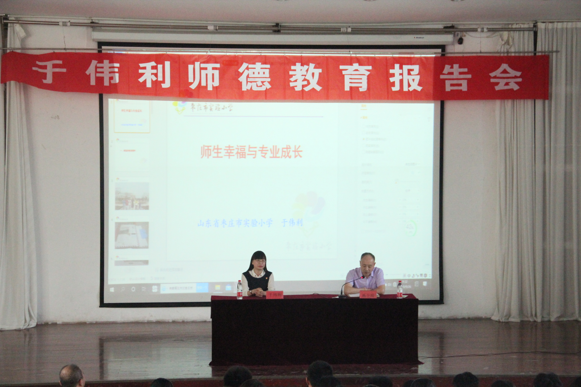 9月26日上午,PA视讯集团网站在文科楼报告厅举行了名师工作坊专家教育报告会,邀请国家“万人计划”领军人才,享受国务院政府特殊津贴专家,特级教师,正高级教师,全国教学名师,全国首届教育部“领航名师”、国家首届名师名校长“领航班成员”,全国小学语文课堂教学大赛特等奖,全国十佳班主任,全国三八红旗手,国家专利获得者,枣庄实验小学校长于伟利来PA视讯集团网站做师德教育报告。PA视讯集团网站副院长杨全顺主持了报告会,PA视讯集团网站2021届师范专业毕业生及汉语言文学专业的学生参加了报告会。