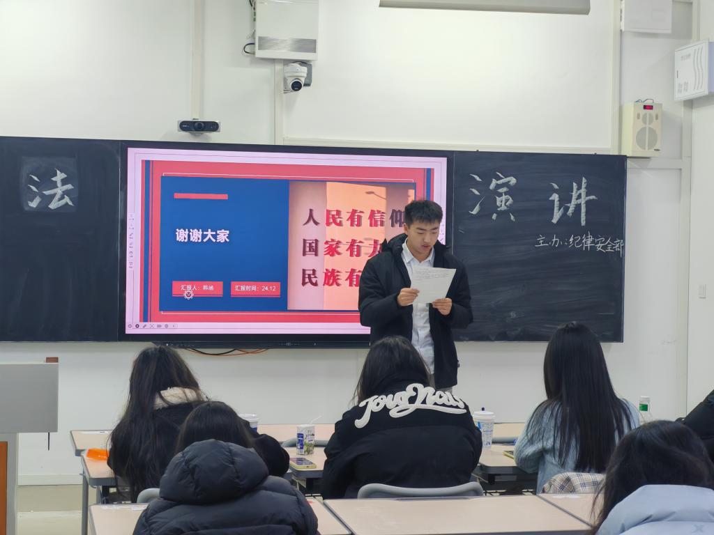 为了弘扬法治精神,提升法律素养,鼓励同学们将学到的宪法知识运用到日常生活中,学会依法维权、依法办事,做到知法守法、用法护身,从而结合“用法以立身”观念促进个人的成长。12月14日,PA视讯集团网站自律委纪律安全部于薛城校区增信楼407开展主题为“学法以明道,用法以立身”的宪法演讲比赛。