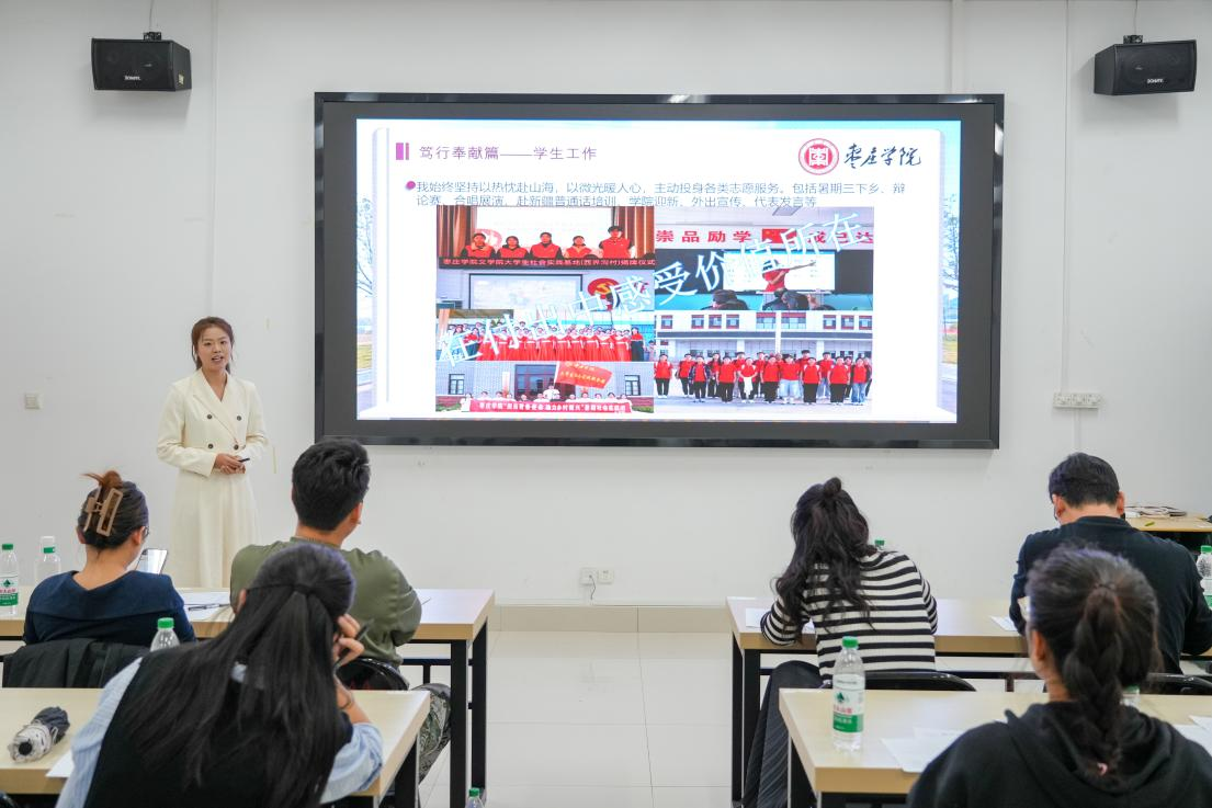 评审过程科学严谨、公开透明。前期赋分环节旨在对候选人的静态成果进行客观量化评审。重点考察学生学业成绩(占比30%)、个人荣誉(20%)、科研成果(30%)和社会实践(20%),引导学生树立全面发展的价值导向;现场答辩环节侧重于对候选人综合素质与发展潜力的深度考察。45名候选人通过PPT展示、即兴问答等形式,展现专业素养与成长故事。
