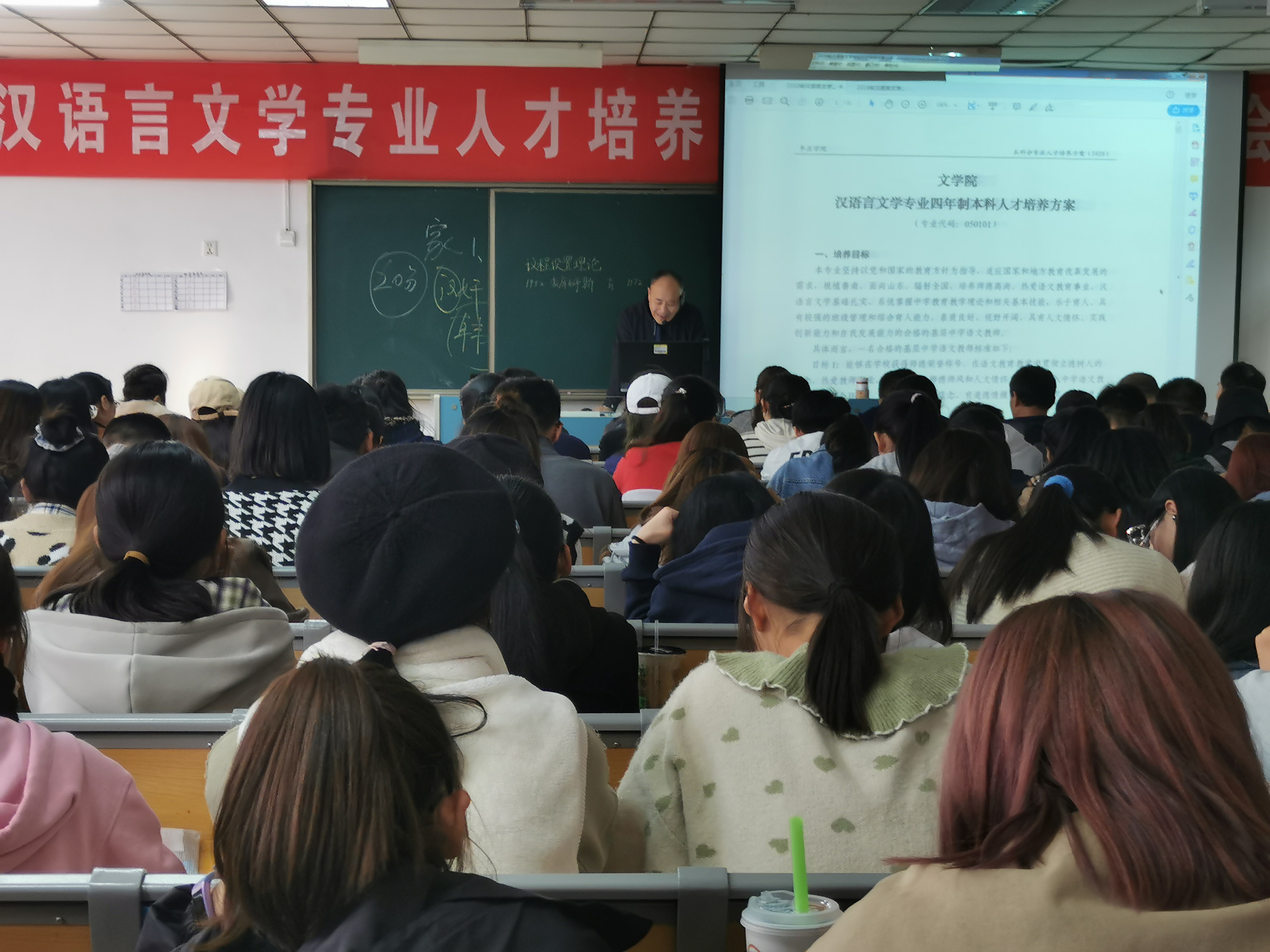 汉语言文学专业负责人张凯老师对人才培养方案进行进一步解读,张老师强调一名合格的中学教师不仅要掌握扎实的汉语言文学基础知识,而且要在语文教育中贯彻立德树人理念,树立终身学习和专业发展意识。