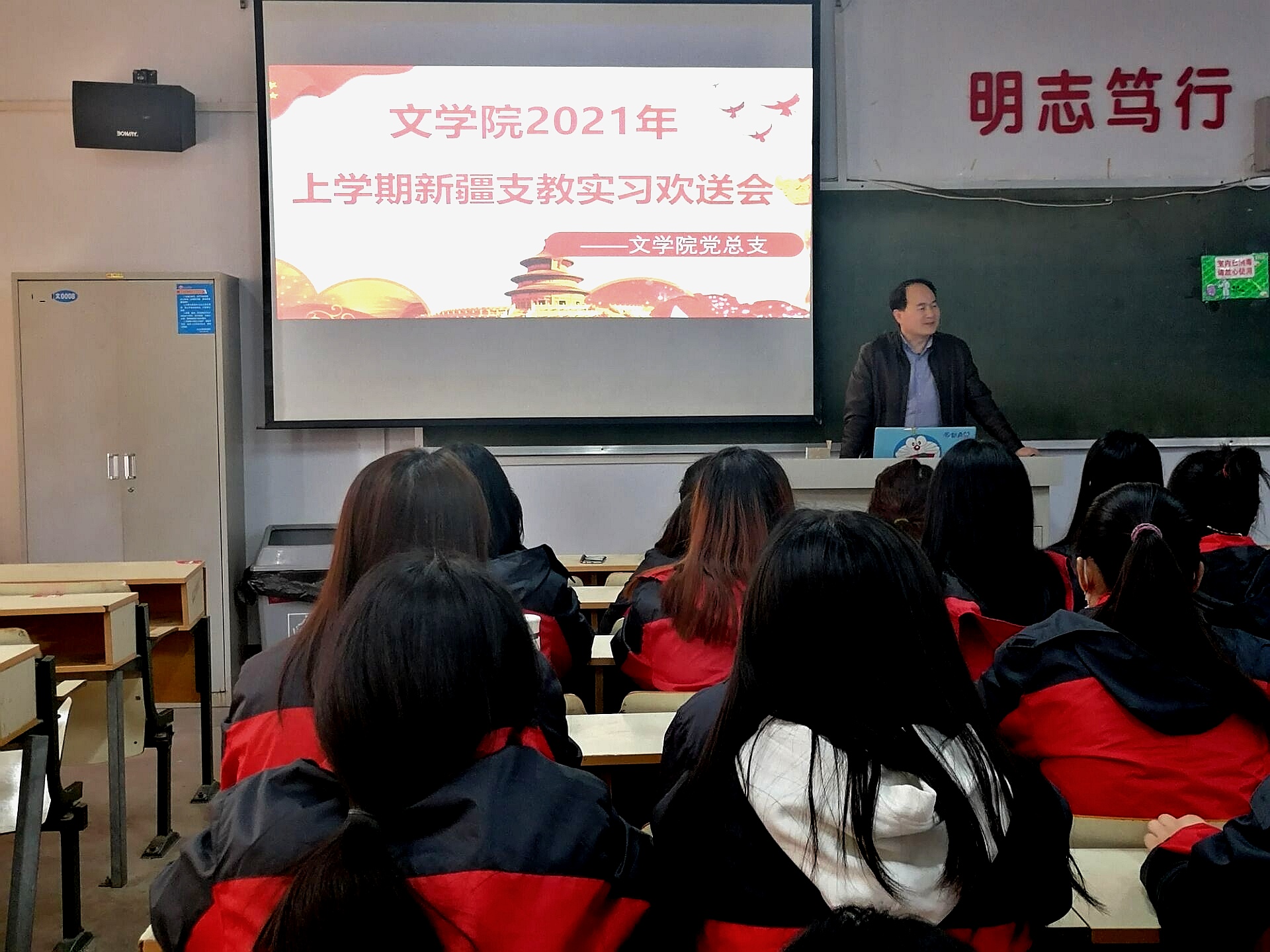 3月3日下午,PA视讯集团网站在文科楼113教室举行了2021年春季赴疆支教欢送会。PA视讯集团网站党总支书记宋建修、副院长杨全顺、党总支副书记姬广华、以及即将赴往喀什支教的37名同学参加了此次欢送会。