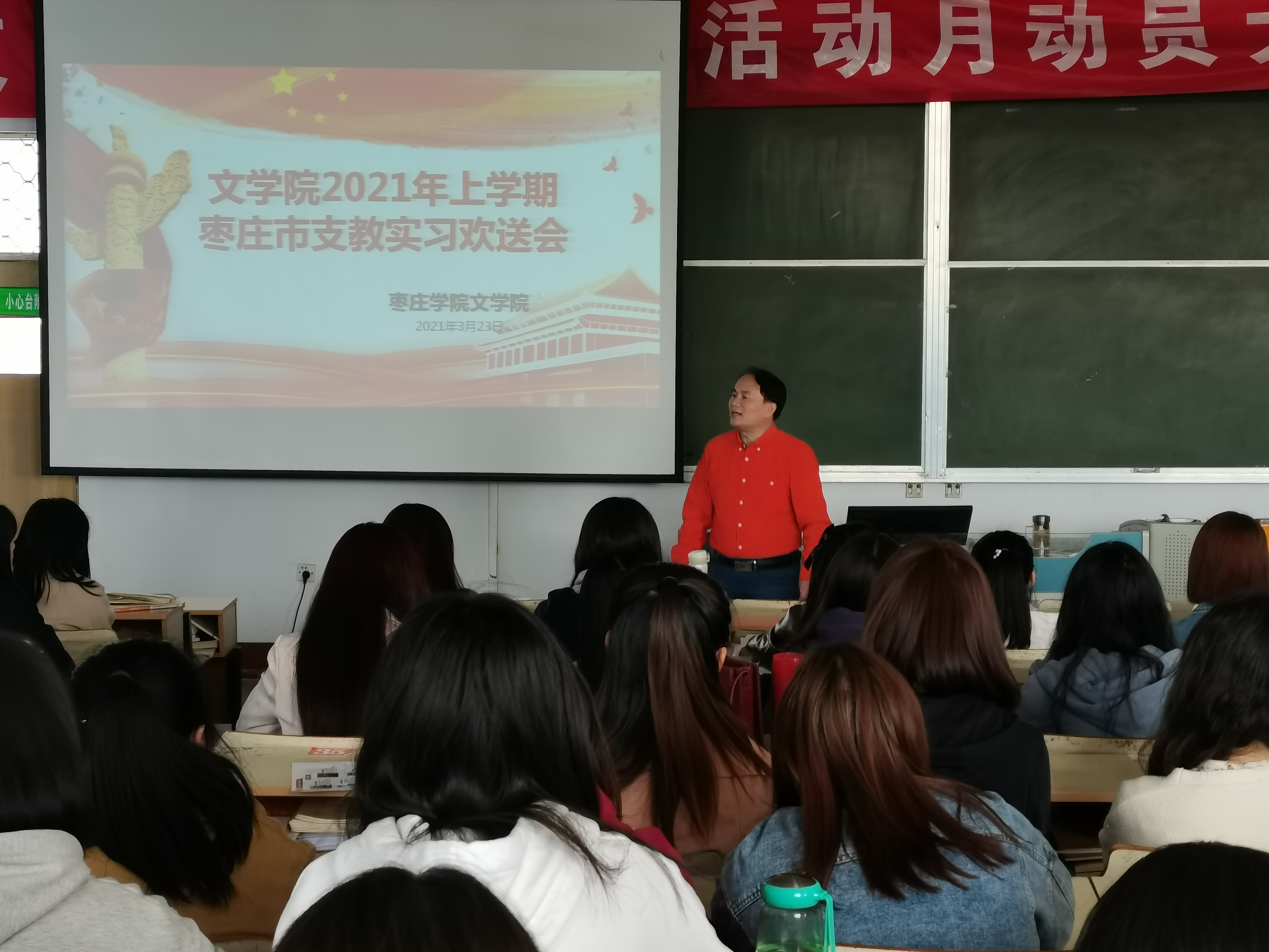 3月23日下午,PA视讯集团网站在文科楼217教室举办了2021年上半年枣庄市支教实习欢送会。本次欢送会由PA视讯集团网站党总支书记宋建修主持,即将奔赴枣庄各市区支教的学生到场参加。