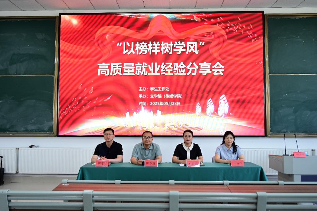 “以榜样树学风” 高质量就业经验分享会是学院推进学风建设、助力学生就业的重要举措。学院将持续开展系列就业指导活动,为学生成长及高质量就业护航,引导学生将个人理想融入国家发展大局,在民族复兴征程中贡献青春力量。